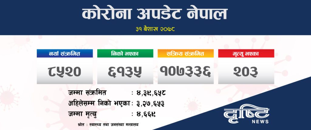 काठमाडौं । २४ घण्टामा कोरोना भाइरसको संक्रमणबाट निको हुनेको संख्या बढेको छ । कोरोना भाइरसको दोस्रो लहरले मुलुकलाई गाँज्दै लगेको बेला पछिल्लो केही दिनको तुलनामा