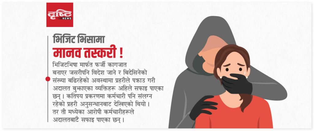 काठमाडौं । भिजिट भिसामार्फत फर्जी कागजात बनाएर जसरीपनि विदेश जाने र बिदेसिनेको संख्या बढिरहेको अवस्थामा प्रहरीले पक्राउ गरी अदालत बुझाएका व्यक्तिहरू अहिले सफाइ पाएका छन्