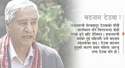 काठमाडौं । बाढीपहिरो निरीक्षण गर्ने बहानामा गतसाता सुदूरपश्चिम प्रदेश पुगेका नेपाली कांग्रेसका सभापतिसमेत रहेका प्रधानमन्त्री शेरबहादुर देउवाले अर्लि इलेक्सनको प्रसंग निकालेर मंसिर ९ देखि १३