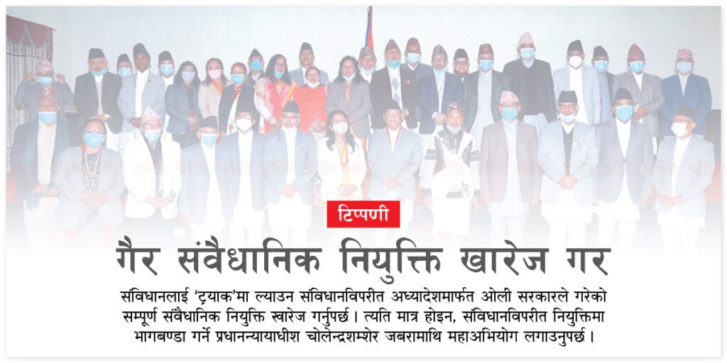 काठमाडौं । संविधानको धारा ७६(५) को स्पष्ट व्याख्या गरेर २०७७ असार २८ गते सर्वोच्च अदालतले फैसला सुनाएपछि राजनीतिक गतिरोध अन्त्य भएको छ । राष्ट्रपति विद्यादेवी