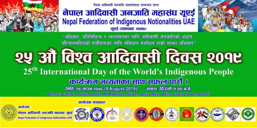 युएई, २९ असार । युएईमा भव्यताका साथ ‘२५औँ अन्तर्राष्ट्रिय विश्व आदिबासी दिवस’ मनाउने तयारी गरिएको छ । नेपाल आदिवासी जनजाति महासंघ युएईका अध्यक्ष पासाङ रिन्जी