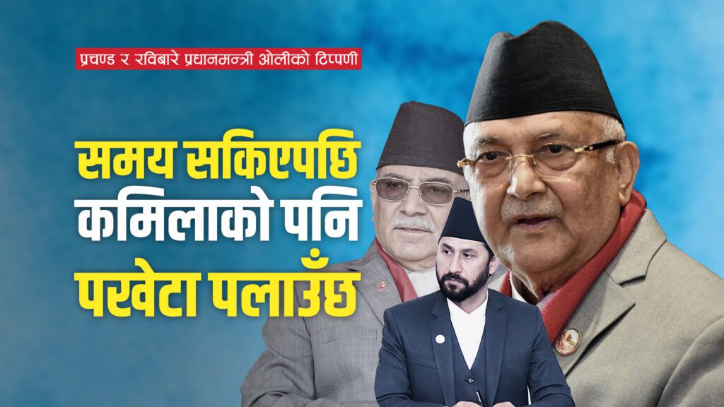 प्रचण्ड र रविबारे प्रधानमन्त्री ओलीको टिप्पणी : समय सकिएपछि कमिलाको पनि पखेटा पलाउँछ (भिडियो)