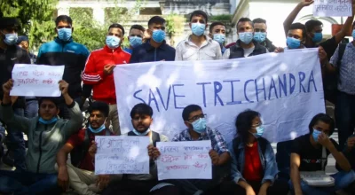 भवन पुननिर्माणको माग गर्दै त्रिचन्द्र क्याम्पसका विद्यार्थीद्वारा प्रदर्शन