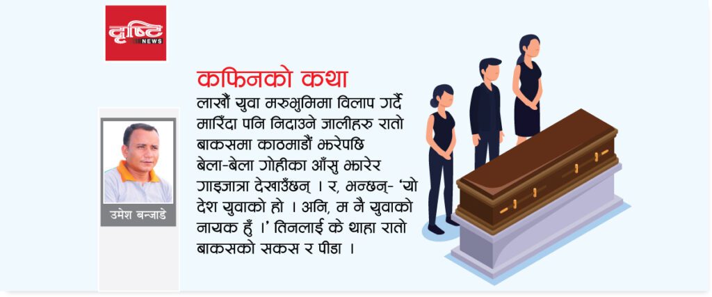 गगनमा पङ्ख फुकाउँदै उडेका चराहरु फत्र्याक्क भुइँमा खस्ने गर्मी । त्यही गर्मीमा दिनभरी मरिमरी काम गर्दा पसिनाले नित्रुक्क भिजेको थकित शरीर । आज पनि सदाझैँ