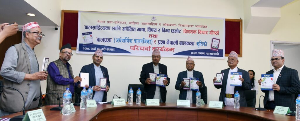 काठमाडौँ । नेपाल प्रज्ञा–प्रतिष्ठान, बालसाहित्य तथा लोकवार्ता विभागद्वारा बुधबार प्रज्ञा भवनको देवकोटा सभाकक्षमा बालसाहित्य सम्बन्धी विचारगोष्ठीको आयोजना गरिनुका साथै अर्धवार्षिक पत्रिका ‘बालप्रज्ञा’ र ‘प्रज्ञा नेपाली