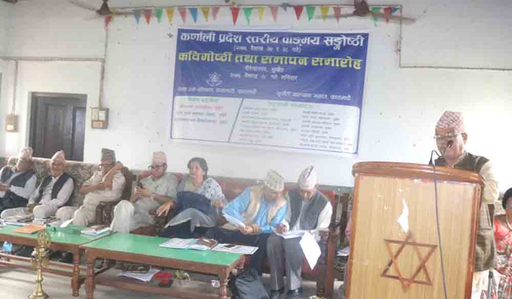 काठमाडौं । २०७६ वैशाख २७ र २८ गते सुर्खेतमा नेपाल प्रज्ञा–प्रतिष्ठानद्वारा सुर्खेती कल्याण समाजसँगको सहकार्यमा कर्णाली प्रदेश स्तरीय वाङ्मय सङ्गोष्ठी आयोजना गरियो । सङ्गोष्ठीको उद्घाटन