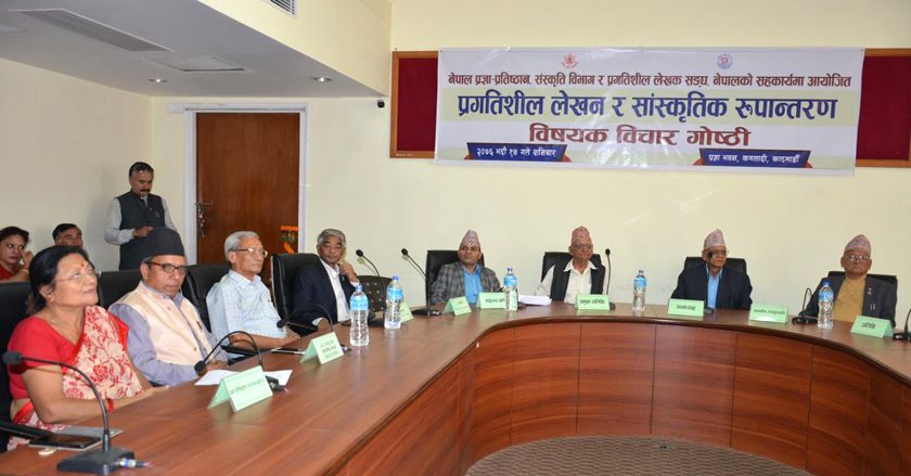 काठमाडौँ, १५ भदौै । नेपाल प्रज्ञा–प्रतिष्ठान, संस्कृति विभाग र प्रगतिशील लेखक सङ्घको सहकार्यमा प्रज्ञा भवनमा ‘प्रगतिशील लेखन र सांस्कृतिक रुपान्तरण’ विषयक विचार गोष्ठी आयोजना गरियो