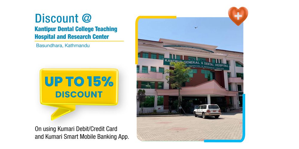 काठमाडौं । कुमारी बैंक लिमिटेड र बसुन्धरा स्थित कान्तिपुर डेन्टल कलेज टिचिङ्ग अस्पताल तथा रिसर्च केन्द्र बीच कुमारी बैंक लिमिटेडका ग्राहक महानुभावहरुलाई कान्तिपुर डेन्टल कलेज