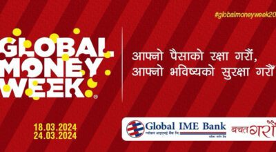 काठमाडौं । विश्व बैङ्कको आह्वान यस वर्ष मार्च १८ देखि २४ सम्मलाई ‘आफ्नो पैसा सुरक्षित गर्नुहोस्, आफ्नो भविष्य सुरक्षित गर्नुहोस्’, भन्ने नारा सहित विश्वव्यापी पैसा