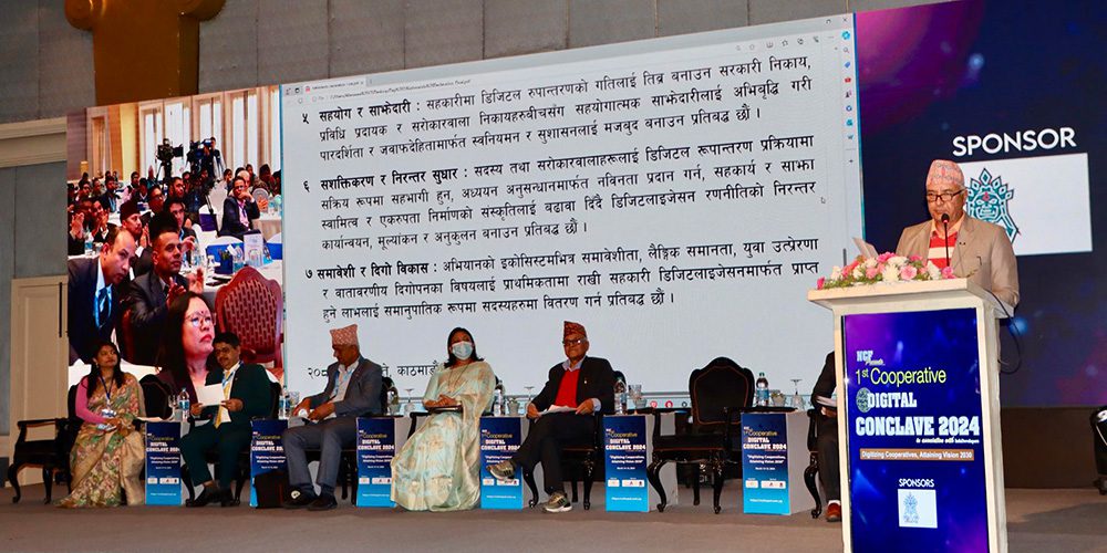 काठमाडौं । राष्ट्रिय सहकारी महासंघको आयोजनामा काठमाडौंमा जारी ‘प्रथम सहकारी डिजिटल कन्क्लेभ’ सात बुँदे प्रतिवद्धतापत्र जारी गर्दै सम्पन्न भएको छ । ‘डिजिटाइजिङ्ग को–अपरेटिभः अटेनिङ्ग भिजन