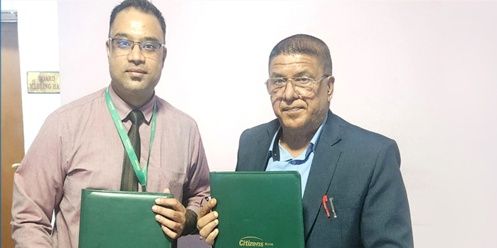 काठमाडौं । सिटिजन्स बैंक र सिनामगंलस्थित काठमाडौं मेडिकल कलेजबीच ग्राहकलाई छुट दिने सम्बन्धमा एक सम्झौता भएको छ । सम्झौताअनुसार बैंकका कार्डबाहक र मोबाइल बैंकिङ ग्राहकले
