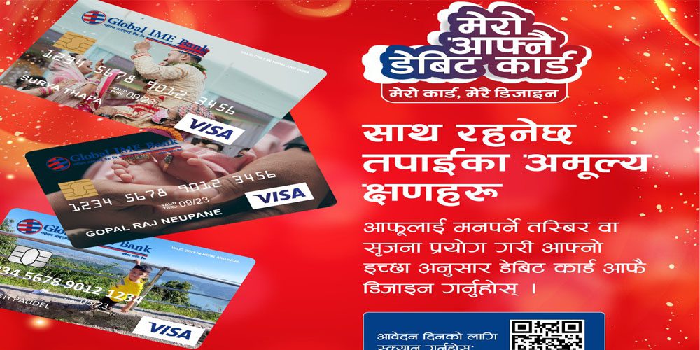 काठमाडौं । ग्लोबल आइएमई बैंकले आफ्ना ग्राहकलाई उनीहरुको आफ्नै छनोटको डिजाइनमा व्यक्तिगत फोटोसहितको डेबिट कार्ड उपलब्ध गराउने सुविधा ल्याएको छ । बैंकले ‘मेरो आफ्नै डेबिट