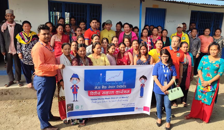 काठमाडौँ । मेगा बैंक नेपाल लिमिटेडले देशव्यापी वित्तीय साक्षरता कार्यक्रम सञ्चालन गरेको छ । ‘ग्लोबल मनी वीक २०२२’ लाई सफल बनाउने उद्देश्यले मेगा बैंकले चैत