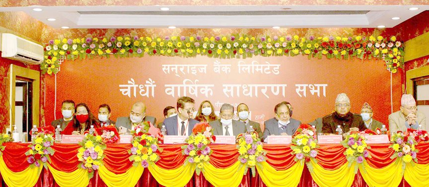कठमाडौं । सनराइज बैंक लिमिटेडले सेयरधनीका लागि वितरण प्रस्ताव गरेको ७ प्रतिशत लाभांश पारित गरेको छ । बैंकको १४औँ साधारणसभाले ६ दशमलव ६५ प्रतिशत बोनश सेयर
