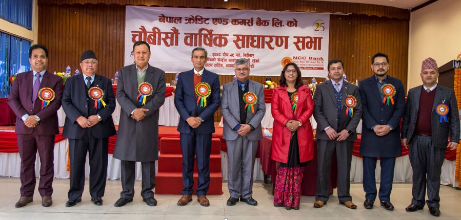 काठमाडौं । नेपाल क्रेडिट एण्ड कमर्स बैंक लिमिटेडको २४औँ वार्षिक साधारणसभा सम्पन्न भएको छ । उक्त साधारणसभाले आर्थिक वर्ष २०७७/७८ को मुनाफाबाट आठ प्रतिशत बोनस