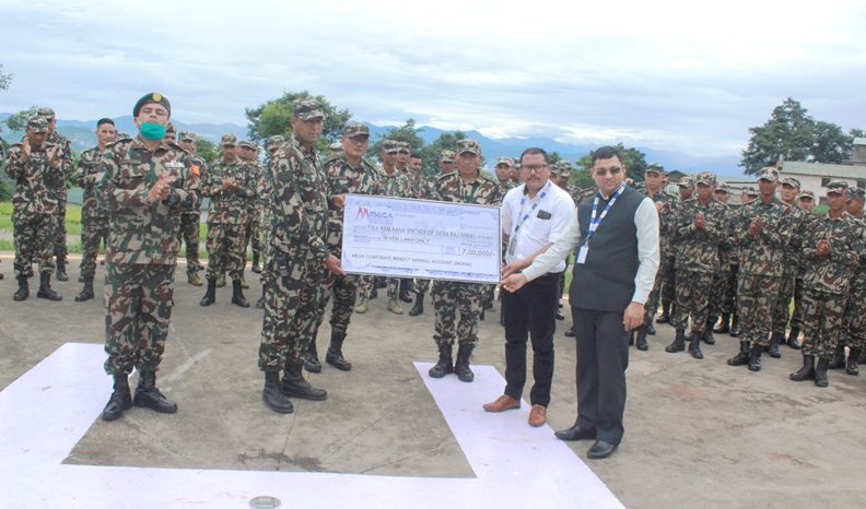 काठमाडौँ, २३ साउन । मोेटरसाइकल दुर्घटनामा परी असामयिक निधन भएका नेपाली सेनाका सिपाही शिवराज रानाका परिवारलाई मेगा बैंक नेपाल लिमिटेडले बिमा बापत सात लाख रुपैँया