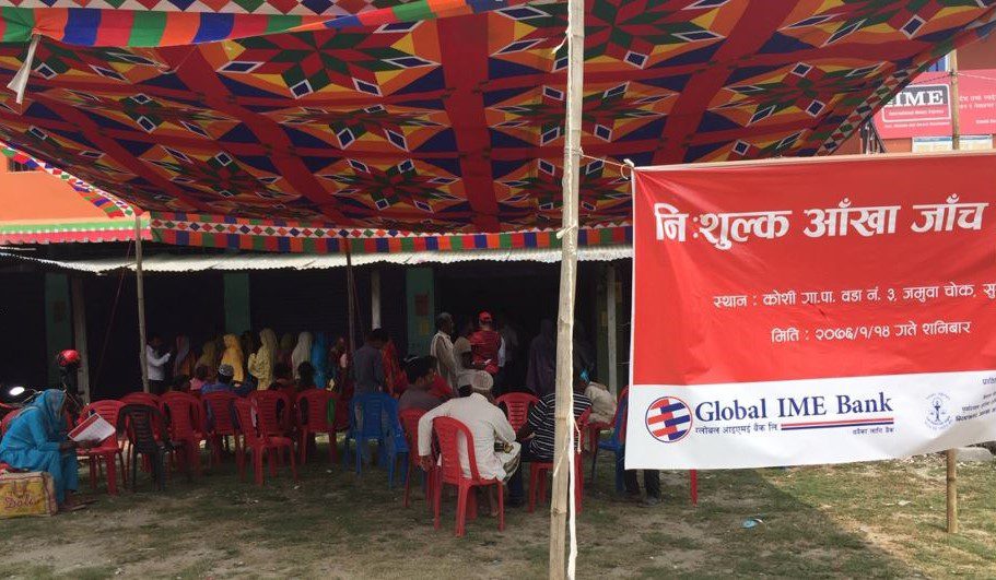 काठमाडौं । ग्लोबल आइएमई बैंक लिमिटेडले सामाजिक उत्तरदायित्वअन्तर्गत २०७६ बैशाख १४ गते सुनसरी जिल्ला, कोशी गाँउपालिका वडा नं. ३, जमुवा चोकमा निःशुल्क आँखा जाँच शिविर