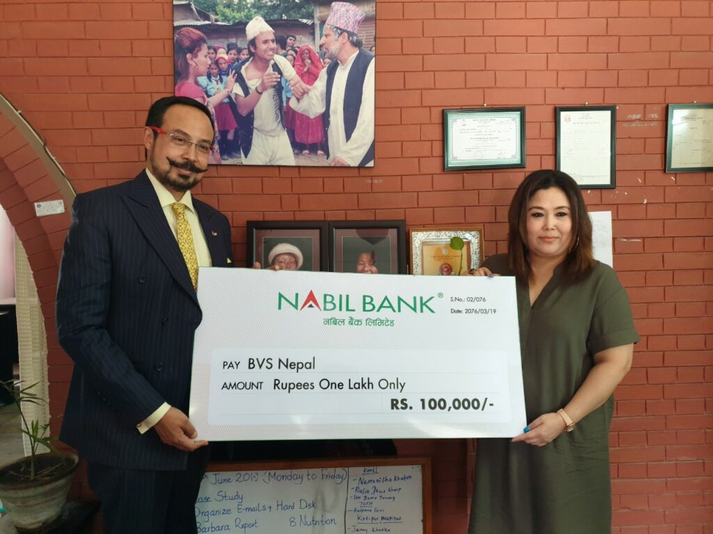 काठमाडौं । नबिल बैंकले संस्थागत सामाजिक उत्तरदायित्व अन्तर्गत २०७६ असार १९ गते बन्र्स भायोलेन्स सरभाईभरस नेपाल (बीभिएस नेपाल) लाई रु. एक लाख बराबरको आर्थिक सहयोग