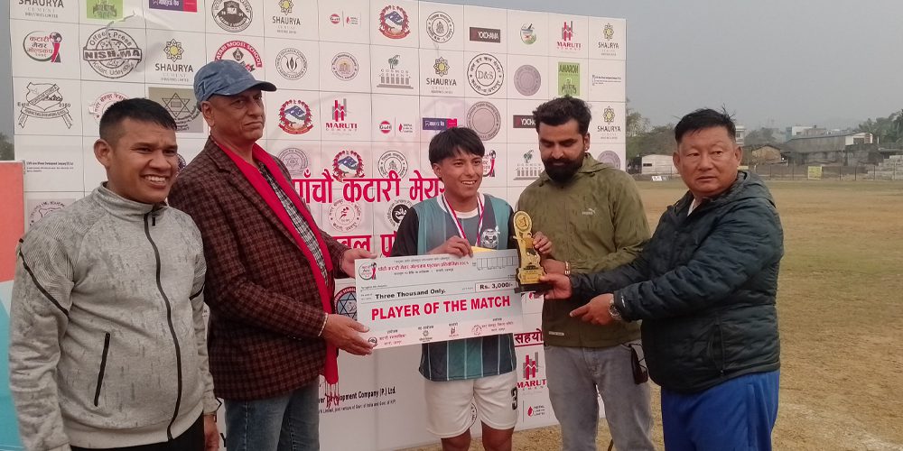 उदयपुर । ‘पाँचौँ कटारी मेयर गोल्डकप अन्तरराष्ट्रिय आमन्त्रण नकआउट फुटबल प्रतियोगिता’मा च्याम्पियन ब्वाईज फुटबल क्लब, काठमाडौँले सामत्सी फुटबल क्लब, भुटानलाई ३–१ गोल अन्तरले पराजित गरेको
