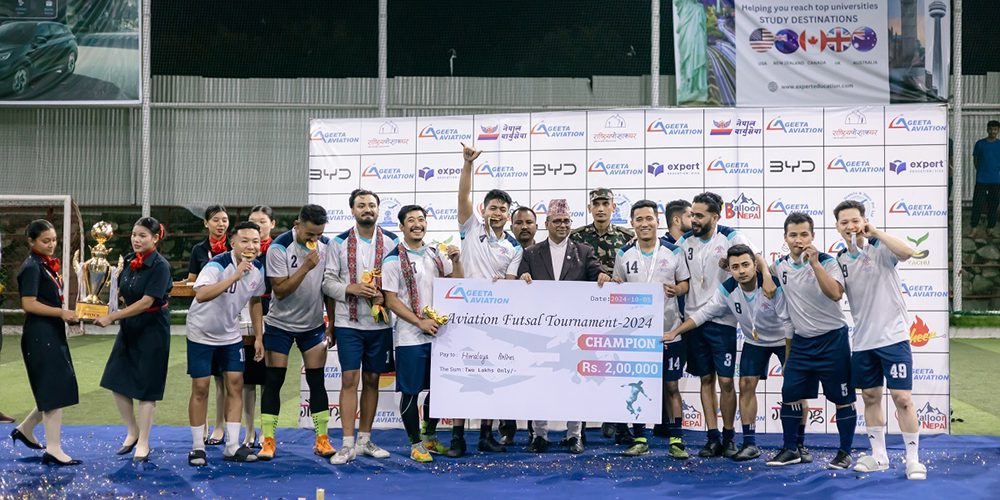 काठमाडौं । गिता एभिएसनले आयोजना गरेको ‘ एभिएसन फुटसल टुर्नामेन्ट’को उपाधि हिमालय एयरलाइन्सले जितेको छ । नेपाल आर्मीलाई पारजित गर्दै हिमालय एयरलाइन्सले उपाधि हात पारेको