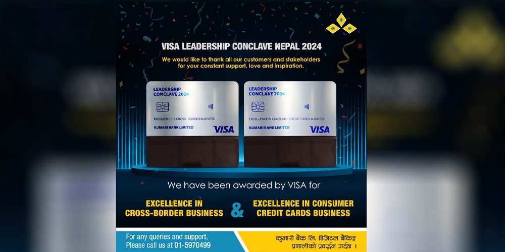काठमाडौं । कुमारी बैंक लिमिटेड भिजा इन्टरनेसनलद्वारा आयोजित ‘लिडरसीप कनक्लेभ नेपाल २०२४’ द्वारा दुई विधामा सम्मानित भएको छ । असोज ५ मा आयोजित उक्त कार्यक्रममा