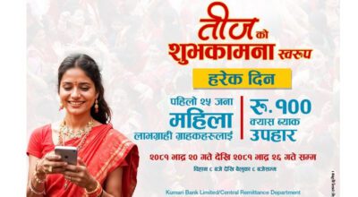 काठमाडौं । नेपाल एसबिआई बैंक र बुद्ध एयरबीच टिकटमा छुट दिने सम्बन्धी सम्झौता भएको छ । सम्झौताअनुसार बैंकका डेबिट कार्ड र मोबाइल बैंकिङ सेवा प्रयोगकर्तालाई