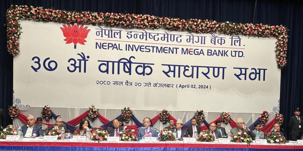 काठमाडौं । नेपाल इन्भेष्टमेन्ट मेगा बैंक लिमिटेडले ३७औँ वार्षिक साधारण सभा नेपाल प्रज्ञा प्रतिष्ठान भवन, कमलादीमा सफलतापुर्वक सम्पन्न गरेको छ । साधारण सभाको अवसरमा बैङ्कले