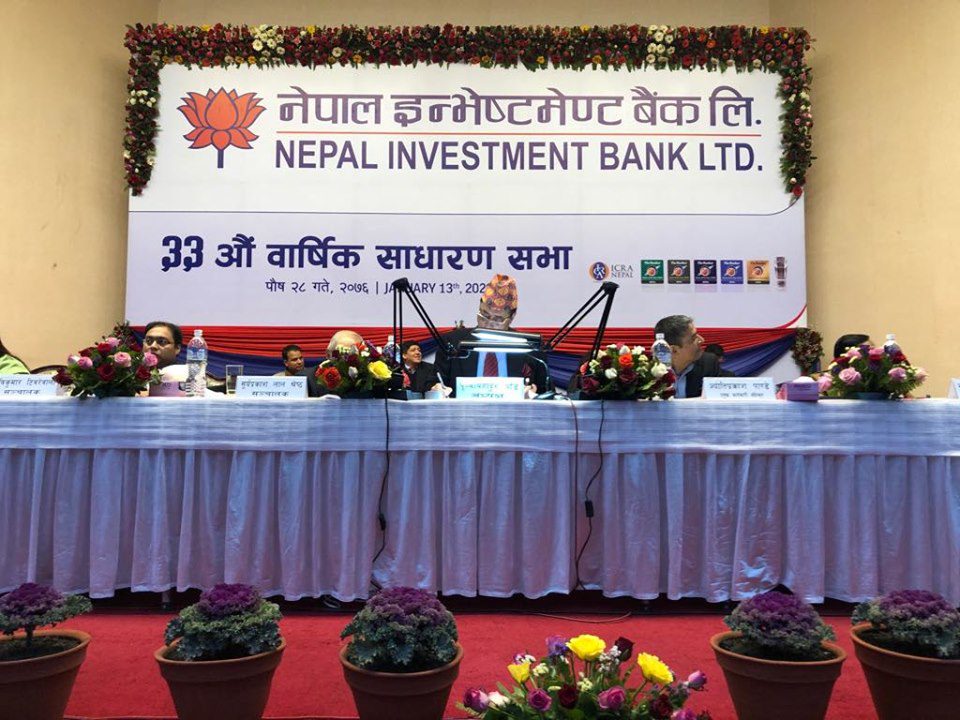 काठमाडौं, २८ पुस । नेपाल इन्भेष्टमेन्ट बैंकले शेयरधनीलाई १९ प्रतिशत लाभांस दिने भएको छ । बैंकले १०.५ प्रतिशत बोनस शेयर तथा ८.५ प्रतिशत नगद लाभांस