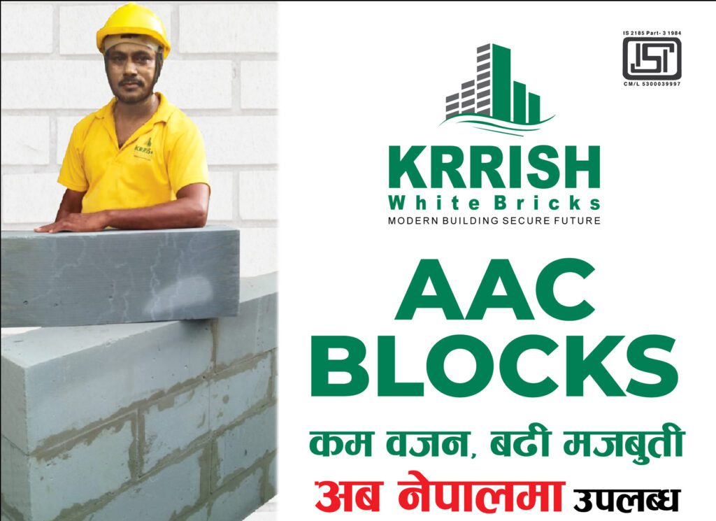काठमाडौं । भारतीय कम्पनी कृष ह्वाइट ब्रिक्स एलएलपीले घर, भवन जस्ता संरचनाको लागत ३० प्रतिशतभन्दा बढीले कटौती गर्ने तर परम्परागत इँटाको तुलनामा निकै बलियो एरेटेड