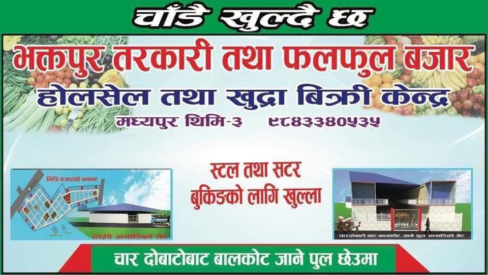 –रमेश गिरी भक्तपुर, २१ पुस (रासस) ः काठमाडौँ कालीमाटीपछिको दोस्रो ठूलो तथा भक्तपुरमा पहिलो ठूलो तरकारी बजार आउँदो पुस २५ गतेदेखि सञ्चालनमा आउने भएको छ ।