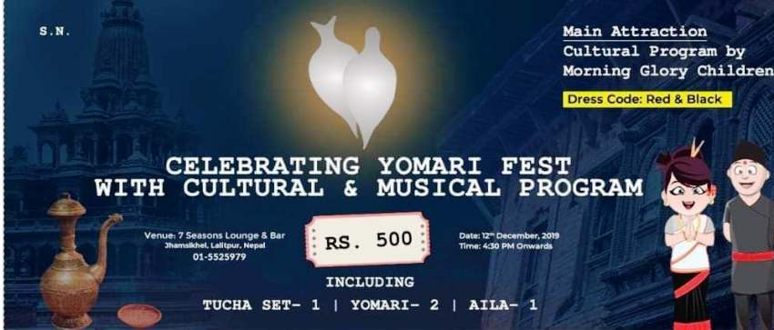 काठमाडौं, २४ मंसिर । यही बिहीबार अर्थात योमरी पुन्हीको दिन सेभेन सिजन लाउन्स बारले योमरी महोत्वस आयोजना गर्ने भएको छ । ललितपुरको झम्सिखेलमा रहेको यो