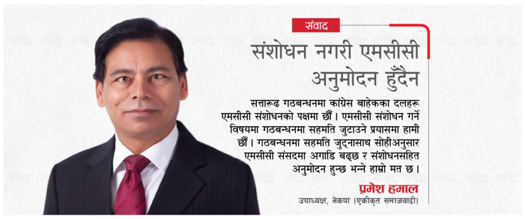 काठमाडौं । अमेरिकी सहयोग नियोग मिलेनियम च्यालेन्ज कर्पोरेसन (एमसीसी) सम्झौता संसदबाट अनुमोदन गर्ने विषय थप पेचिलो बन्दै गएको छ । एमसीसीको विषयमा सत्तारुढ गठबन्धन मात्रै