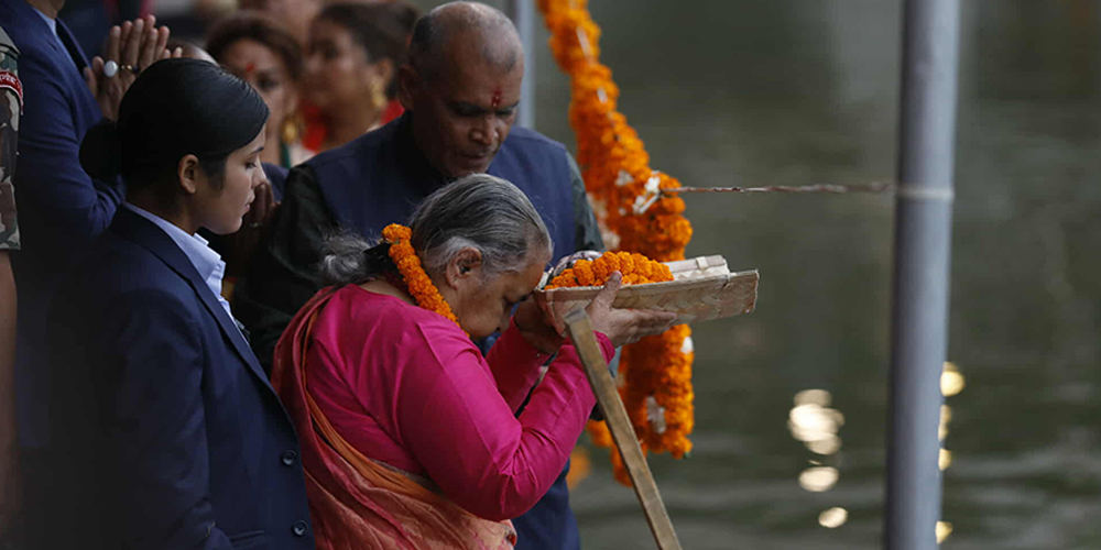 काठमाडौं । प्रधानमन्त्री सुशीला कार्की छठ पूजामा सहभागी भएकी छिन् । उनी कमलपोखरी पुगेर छठ पूजामा सामेल भएकी हुन् । प्रधानमन्त्री कार्कीले सूर्यदेव र छठी