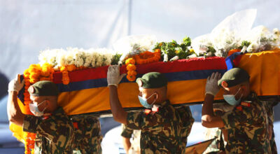 काठमाडौं । इजरायलमा मारिएका विपिन जोशीको महाकाली नदीमा राष्ट्रिय सम्मानसहित अन्त्येष्टि गरिएको छ । सोमबार कञ्चनपुरको भीमदत्त नगरपालिका वडा नं ३ भाषीस्थित घर पुर्याइएका उनले