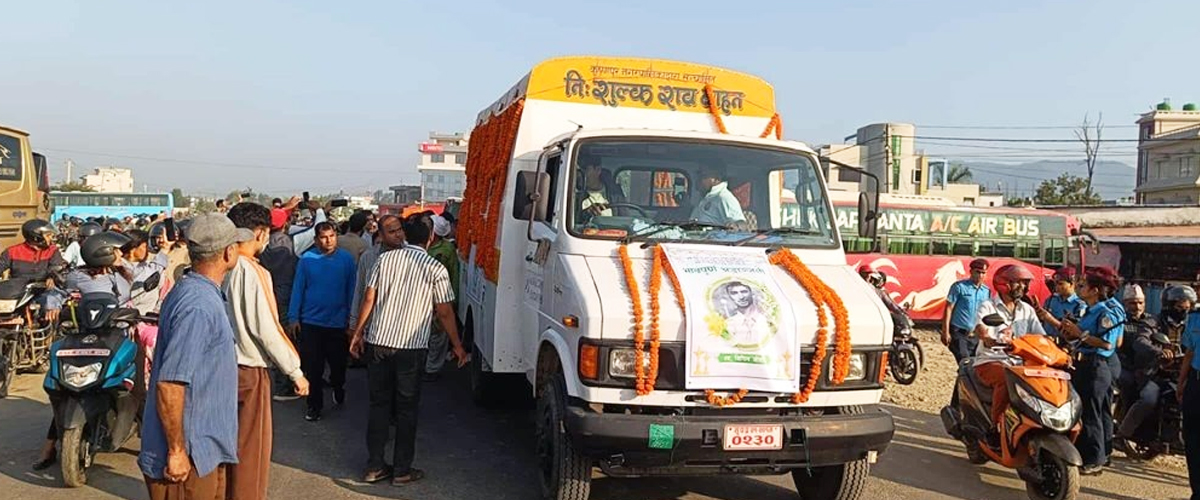 काठमाडौं । इजरायलमा मारिएका विपिन जोशीको अन्त्येष्टि अघि शवयात्रा सुरु भएको छ । भीमदत्त नगरपालिकास्थित भासीबाट केहीबेर अघि शवयात्रा सुरु भएको हो । शवयात्रामा नेपालका