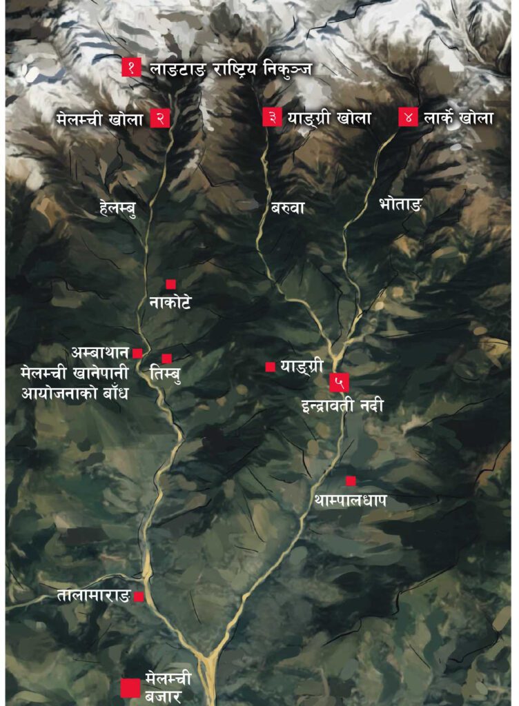 काठमाडौं । असार एक गते आएको मेलम्ची नदीको बाढीले नदी क्षेत्र वरपर रहेका शहर वस्तीलाई बगरमा परिणत बनाइदियो । उक्त बाढीले मेलम्ची खानेपानीको आयोजनामा समेत