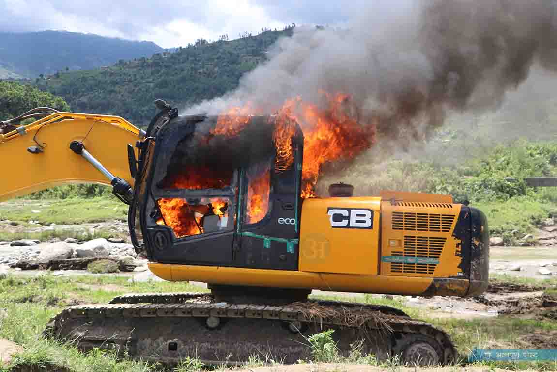 म्याग्दी । म्याग्दीको बेनी नगरपालिका–५ बगुवाखोलामा राखिएका तीन डोजरमा अज्ञात समूहले बुधबार राति आगो लगाइदिएको छ । निर्माण व्यवसायी सङ्घ म्याग्दीका अध्यक्ष नारायण जिसीको बिएन