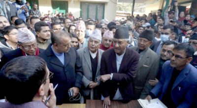 काठमाडौं । नेकपा एमालेका अध्यक्ष केपी शर्मा ओली संसदीय दलको नेतामा निर्विरोध चयन भएका छन् । मंगलबार उपाध्यक्ष विष्णु पौडेलको प्रस्ताव र अर्का उपाध्यक्ष सुवास