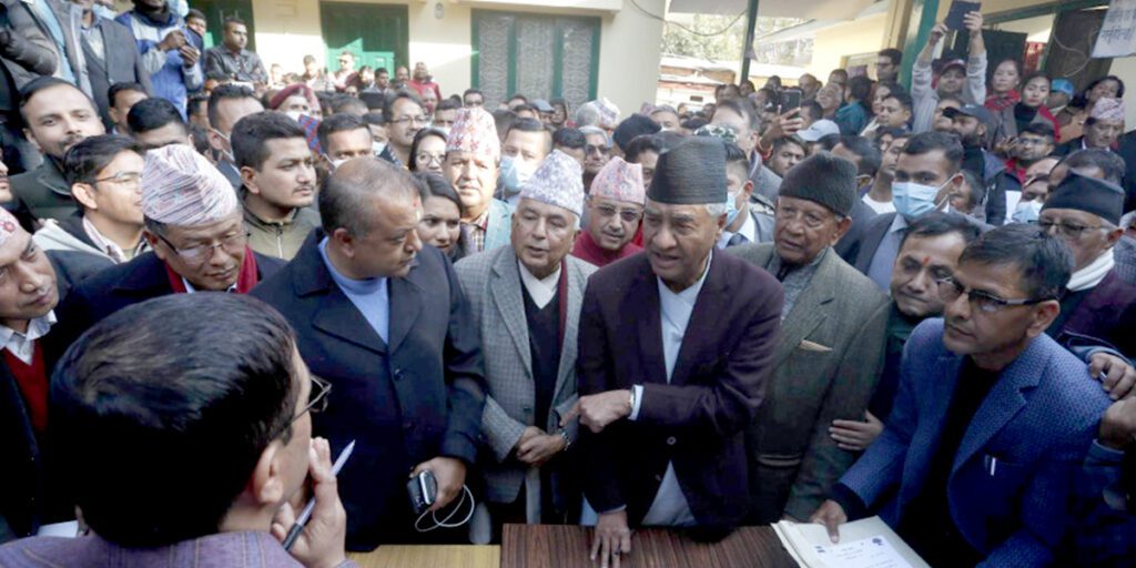 काठमाडौं । नेपाली कांग्रेस संसदीय दलको नेताका लागि सभापति शेरबहादुर देउवा र महामन्त्री गगन थापाले उम्मेदवारी दर्ता गराएका छन् । सिंहदरबारस्थित संसदीय दलको कार्यालयमा पुगेर