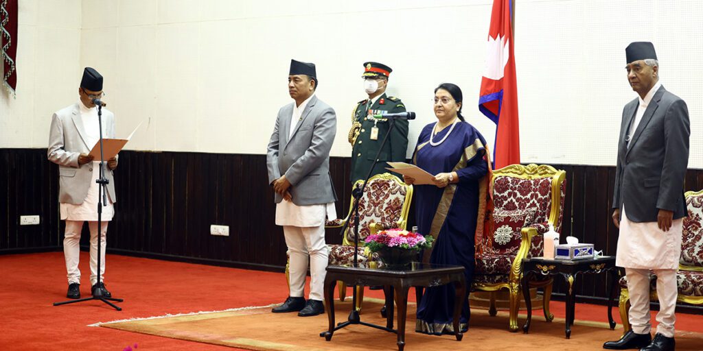 काठमाडौं । राष्ट्रपति विद्यादेवी भण्डारीबाट नवनियुक्त कानुन, न्याय तथा संसदीय मामिलामन्त्री गोविन्द शर्मा कोइरालाले आज पद तथा गोपनीयताको शपथ लिएका छन् । राष्ट्रपति भवन शीतल