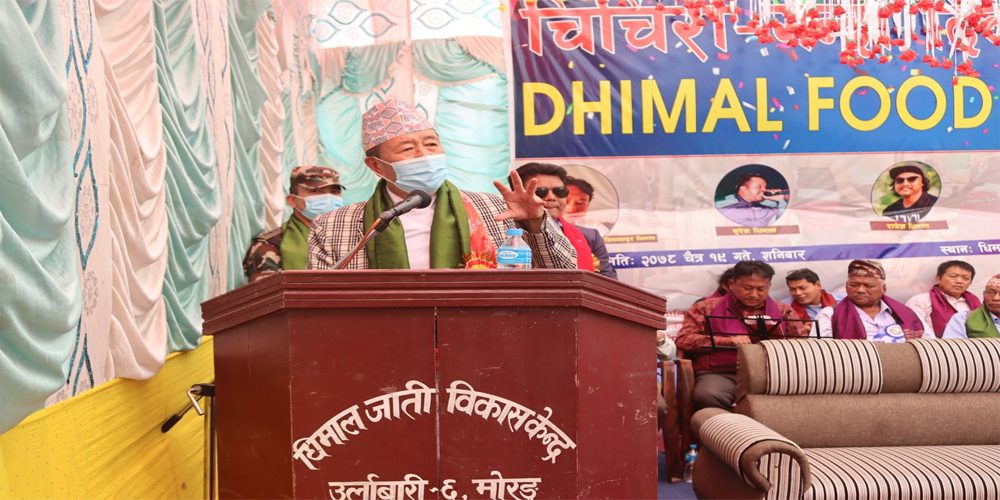 मोरङ । परम्परागत परिकारको प्रवर्द्धन गर्ने उद्देश्यले धिमाल जातीय विकास केन्द्रले चिचिरी–गेन्द्रो दिवस–२०७८ को आयोजना गरेको छ । मोरङको उर्लाबारीमा शनिवार आयोजित उक्त दिवसको उद्घाटन