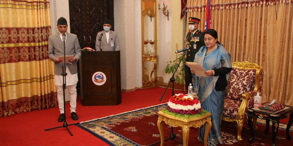 काठमाडौं । राष्ट्रपति विद्यादेवी भण्डारीसमक्ष संयुक्त अधिराज्यका लागि नेपालको आवासीय राजदूत पदमा नियुक्त भएका ज्ञानचन्द्र आचार्यले पद तथा गोपनीयताको सपथ लिएका छन् । राष्ट्रपतिको कार्यालय,