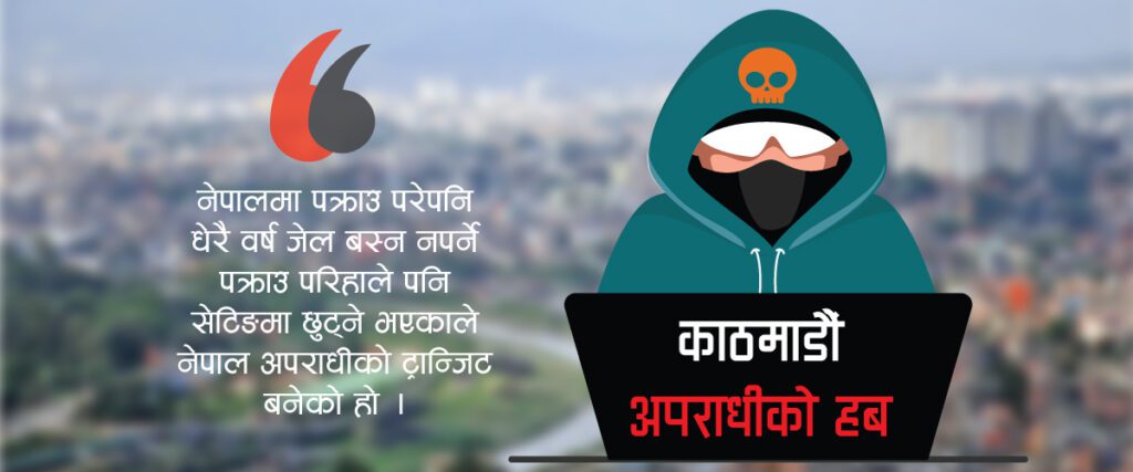 काठमाडौं । गत बुधबार प्रहरीले काठमाडौंमा भइरहेको एउटा नयाँ प्रकारको अपराध पत्ता लगायो । एउटा अन्तर्राष्ट्रिय गिरोहले नेपाललाई ट्रान्जिट बनाएर विश्वभरी अनलाइन जुवा खेलाउँदै आएको