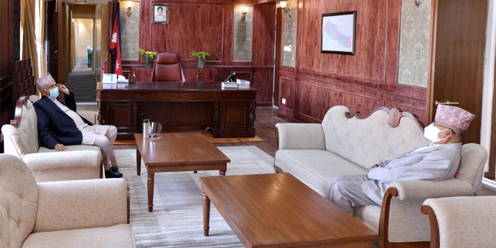 काठमाडौं । नेकपा एमालेका अध्यक्ष केपी शर्मा ओली र वरिष्ठ नेता माधव नेपालबीच सिंहदरबारमा वार्ता सुरु भएको छ । दिउँसो १ बजे वार्ता गर्ने भएिपनि