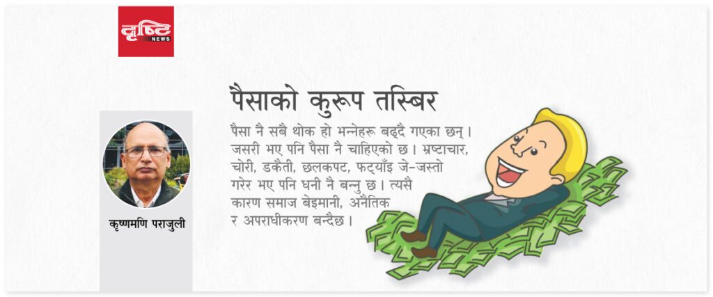 धेरैलाई पैसा सबैथोक हो । थोरैलाई केही होइन । पैसा भन्नाले रुपैयाँ, डलर, युरो आदि मात्र होइनन् । धन, सम्पत्ति, हीरा, मोती, जग्गा, जमिनजस्ता वस्तु