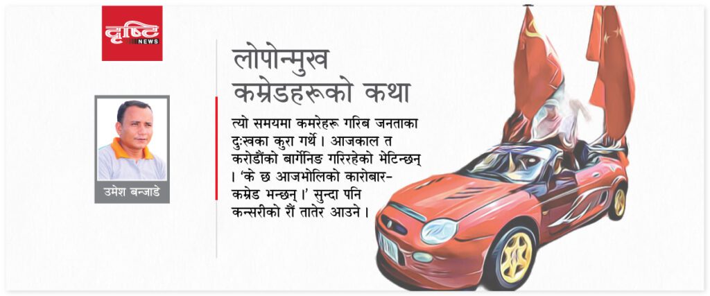 – ‘हाउ कम्रेड ! नेतृत्व कता छ ? के छ नयाँ जानकारी ? माथिबाट केही आयो ? हाम्रो प्रकृति र दुश्मनको प्रवृत्तिबारे कुनै तलमाथि ?’