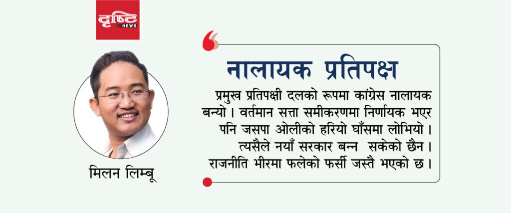 नेपालको राजनीति भीरमा फलेको फर्सी जस्तै भएको छ । प्रधानमन्त्री केपी शर्मा ओली संसदीय राजनीतिमा अल्पमतमा परेर पनि भीरमा फलेको फर्सीजस्तै बालुवाटारमा झुन्डिरहेका छन् ।