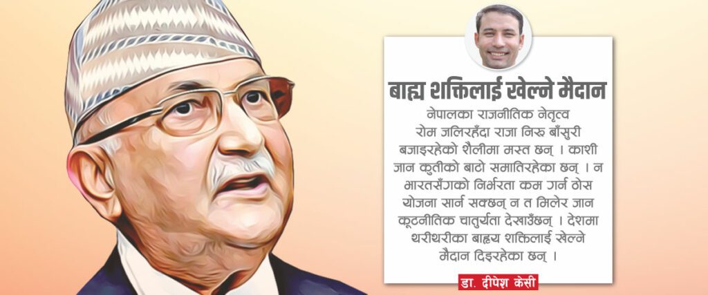 प्रधानमन्त्री केपी शर्मा ओलीले आफूलाई राष्ट्रवादी देखाउन भारतलाई एकपछि अर्को चुनौती दिँदै आएका छन् । त्यसमध्ये एक हो २०७४ फागुन २१ मा तत्कालीन पाकिस्तानी प्रधानमन्त्री