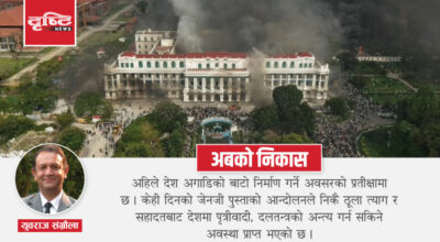 गणतन्त्र स्थापनाको दुई दशकपछि मुलुकमा जेनजी(नवयुवा)हरुको अप्रत्याशित विद्रोहले देश लगभग शून्यतामा पुगेको छ । मुलुकका सबै प्रमुख भौतिक संरचना खण्डहर बनेका छन् भने राजनीतिक रुपले