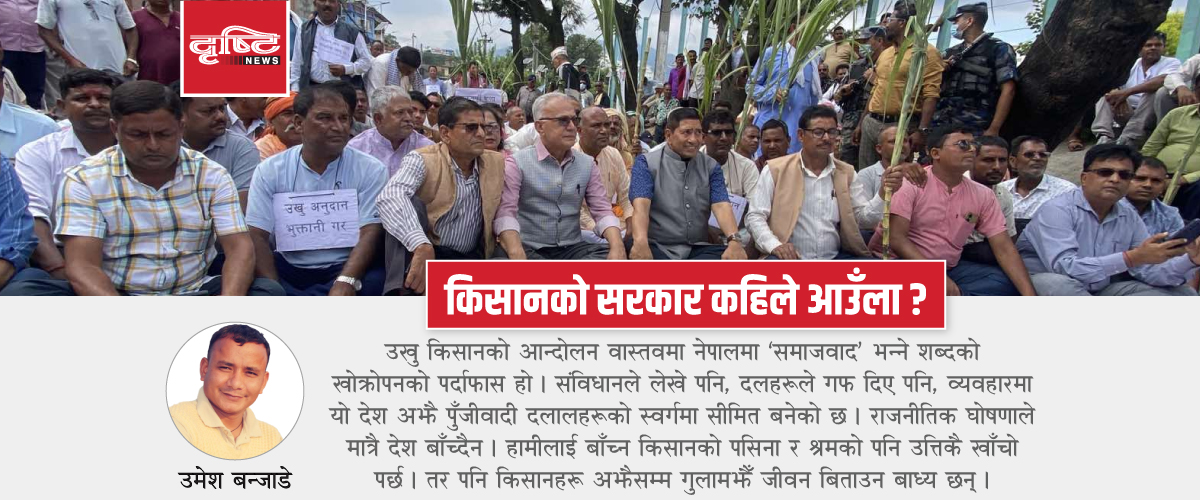 यतिबेला देशमा मजदुर, किसान र सर्वहारा वर्गको प्रतिनिधित्व गर्ने कम्युनिष्ट पार्टीको नेतृत्वमा सरकार छ । तर त्यही कम्युनिष्ट सरकारको नाकैमुनि परिश्रमको मूल्य खोज्दै उखु किसानहरू